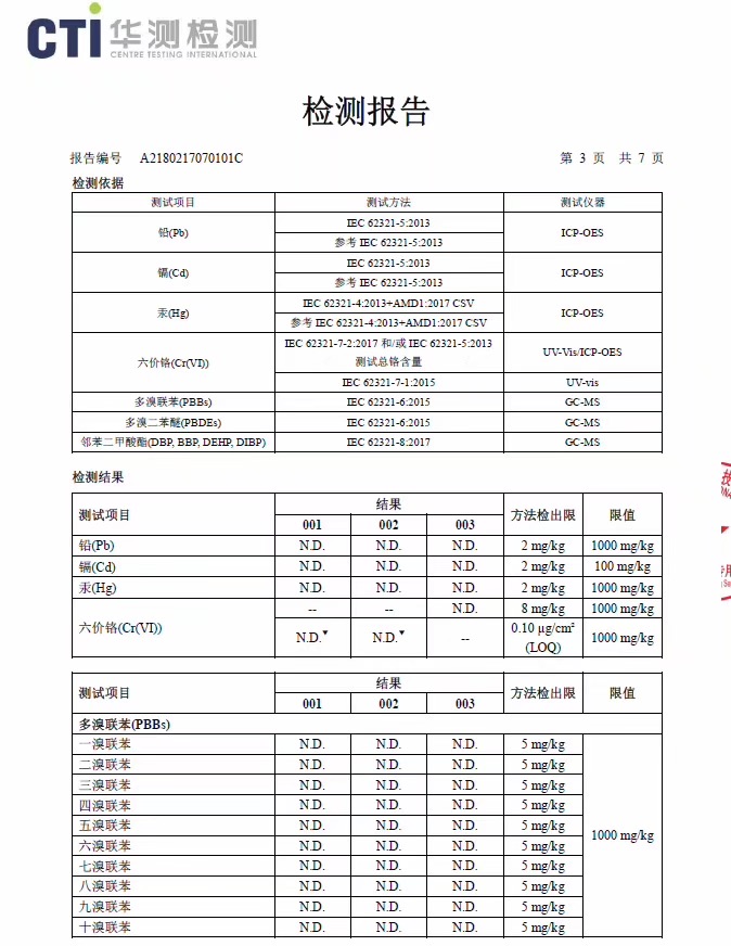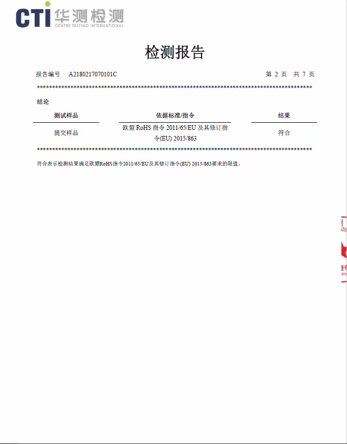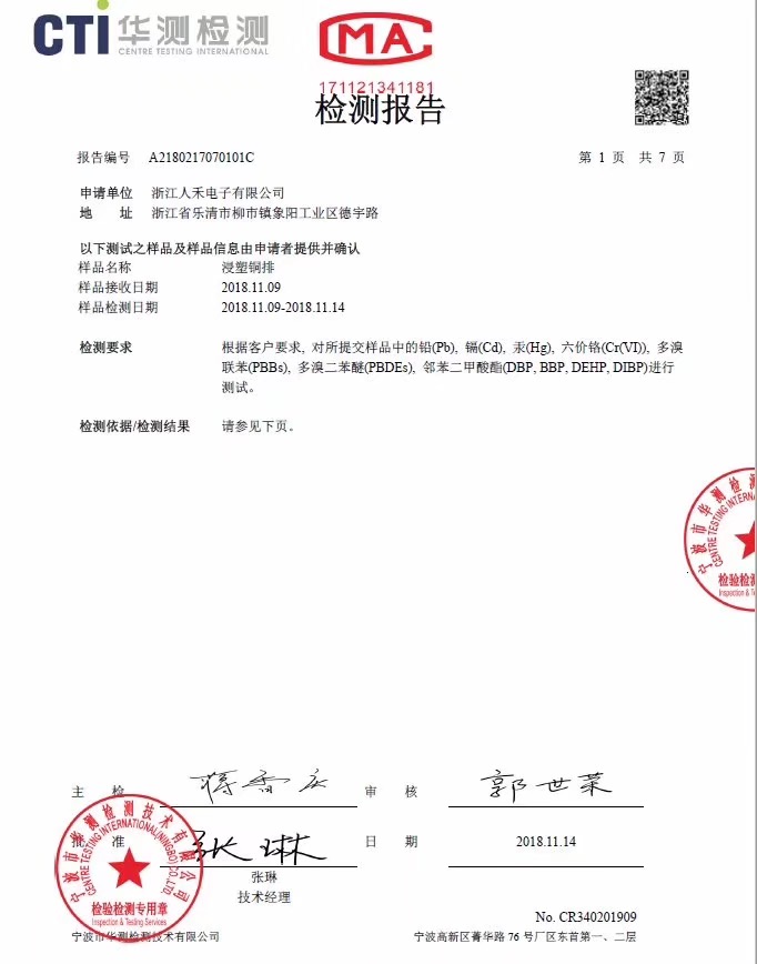 浸塑銅排ROHS報告證書