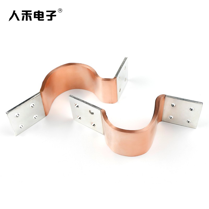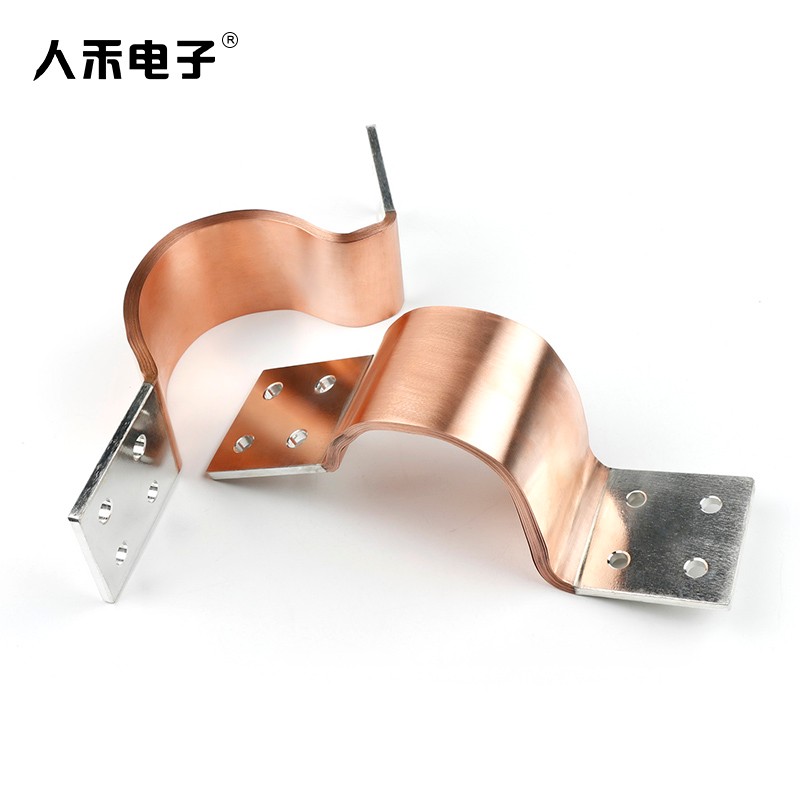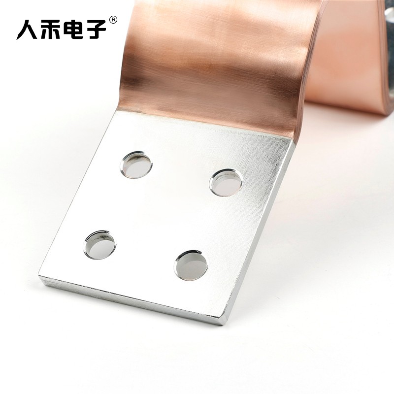 銅帶軟連接可用于變壓器安裝,高低壓開光柜,真空電器,封閉母槽,發電機與母線,整流設備,整流柜與隔離開關之間的連接及母線之間的連接。可提高導電率,調整設備安裝誤差,同時起(減震)工作補償作用、方便試驗和設備檢修等。將銅箔疊片部分壓在一起,采用分子擴散焊,通過大電流加熱壓焊成型。材料:采用優質0.05~0.3mm厚銅箔。客戶可提供特殊寬度、長度和鉆孔,接觸面鍍錫或鍍銀,均可按用戶要求加工。