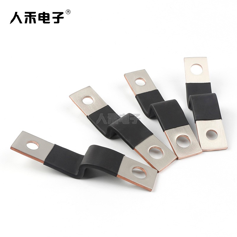 銅箔材質:T2無氧銅 鍍層:表面鍍錫或鍍銀處理 接觸面:接觸面長度可按安裝要求設計。 鉆孔:標準設計無鉆孔要求,可按圖紙要求在接觸面鉆孔。 絕緣材料:標準設計無絕緣材料,可按要求使用PVC絕緣套管并加以熱縮固定。(我們的優勢之一:我們是唯一一家既做軟連接,也做浸塑的企業) 特殊設計:可按圖紙要求加工定做。 尺寸:按圖紙要求定制" />